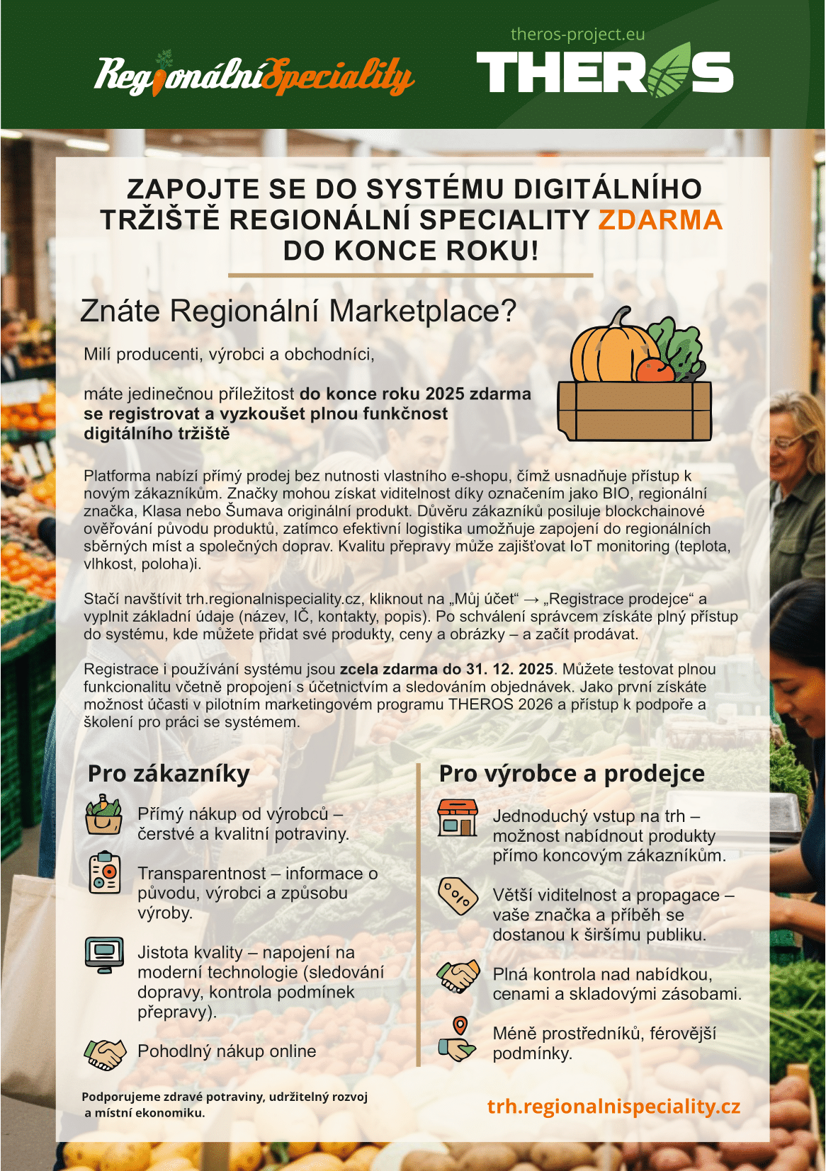 - Získáte přímý přístup k zákazníkům, kteří vyhledávají lokální a poctivé výrobky.
